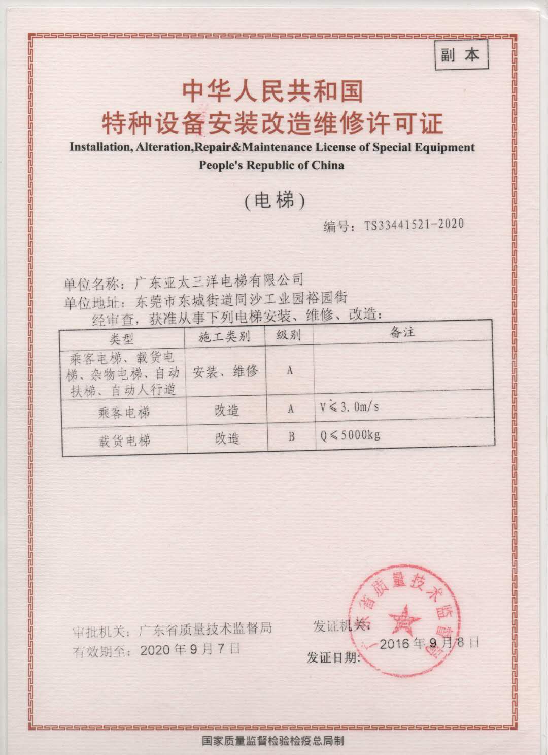 廣東亞太三洋電梯有限公司是從事電梯產(chǎn)品設(shè)計、制造、安裝及售后服務(wù)的專業(yè)公司,其前身是廣東地區(qū)較早成立的電梯企業(yè)之一,成立于1993年,是一家擁有世界先進技術(shù)的電梯企業(yè)。先后獲得了國家質(zhì)量監(jiān)督檢驗總局及國家有關(guān)部門頒發(fā)的(AAA)生產(chǎn)許可證和安裝資質(zhì),并通過了行業(yè)質(zhì)量體系認證,產(chǎn)品行銷世界30多個國家和地區(qū)。“好品質(zhì),用心打造”,亞太三洋電梯堅持一絲不茍地控制所有生產(chǎn)工藝,秉承質(zhì)量的精益求精和工藝的日臻完善...
